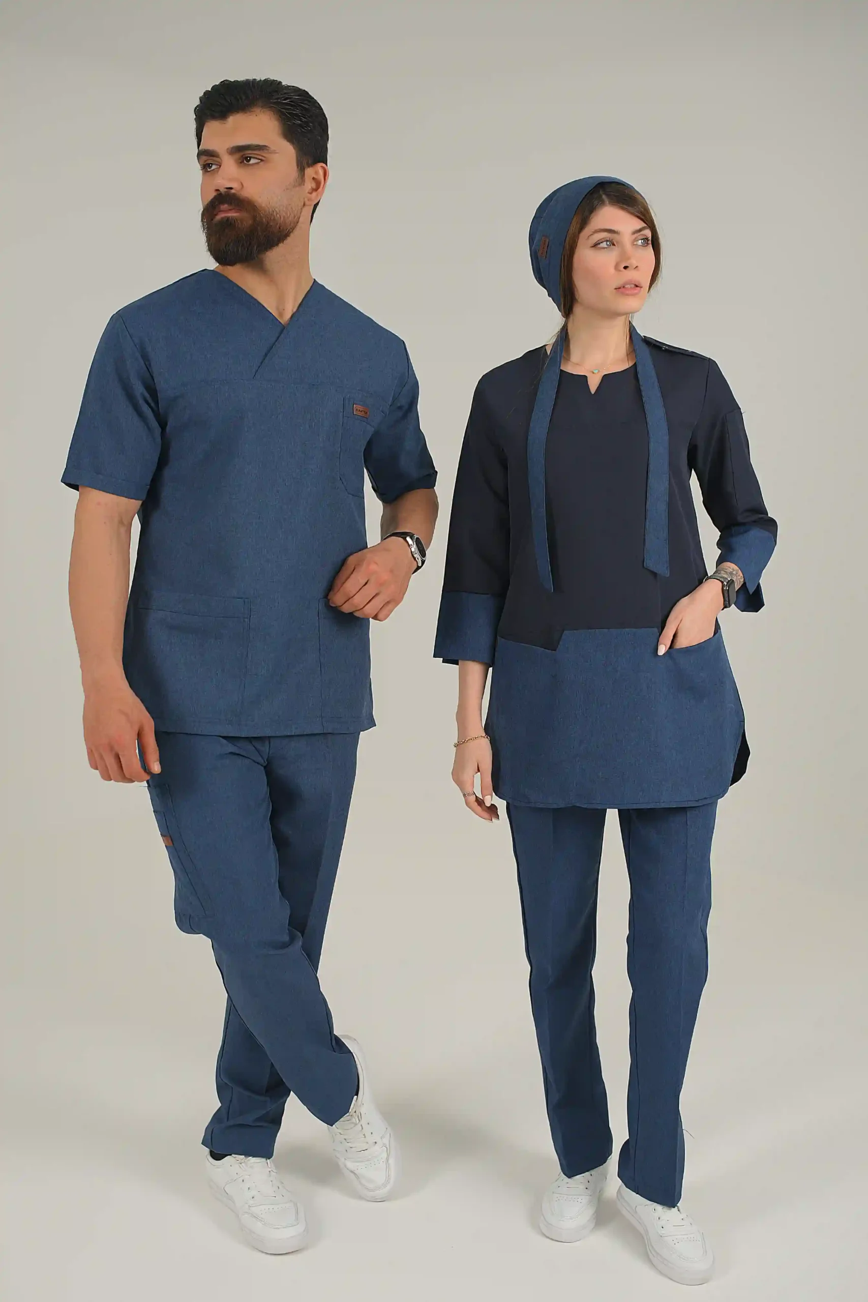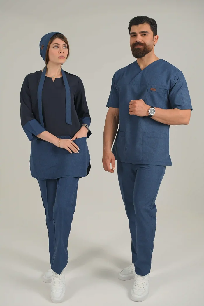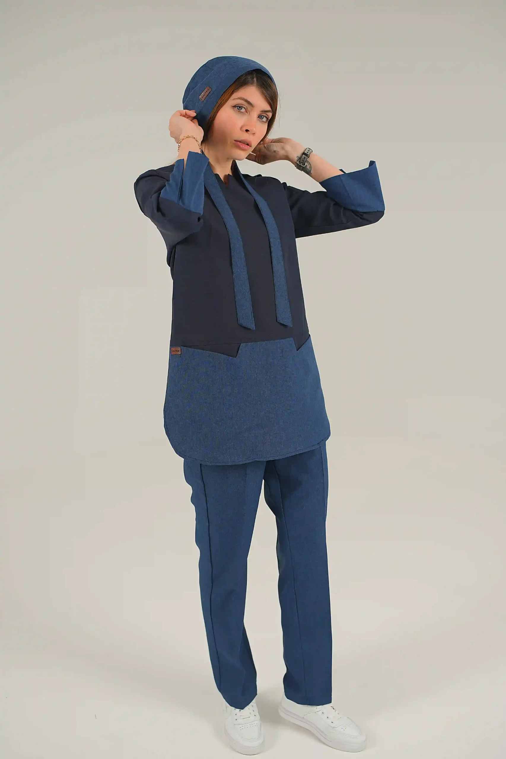 اسکراب زنانه آستین سه ربع سرمه ای _ درباری (دو رنگ)