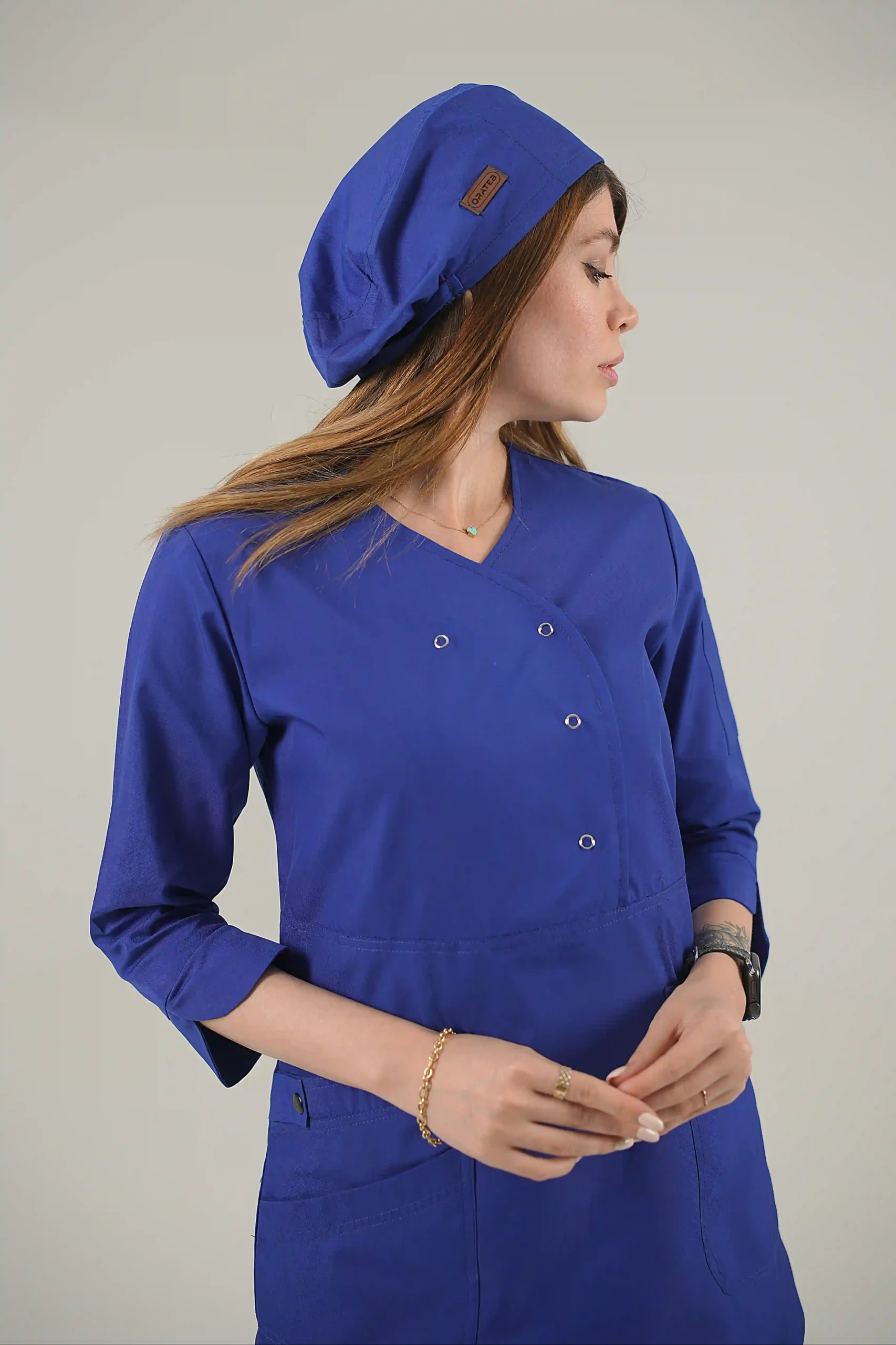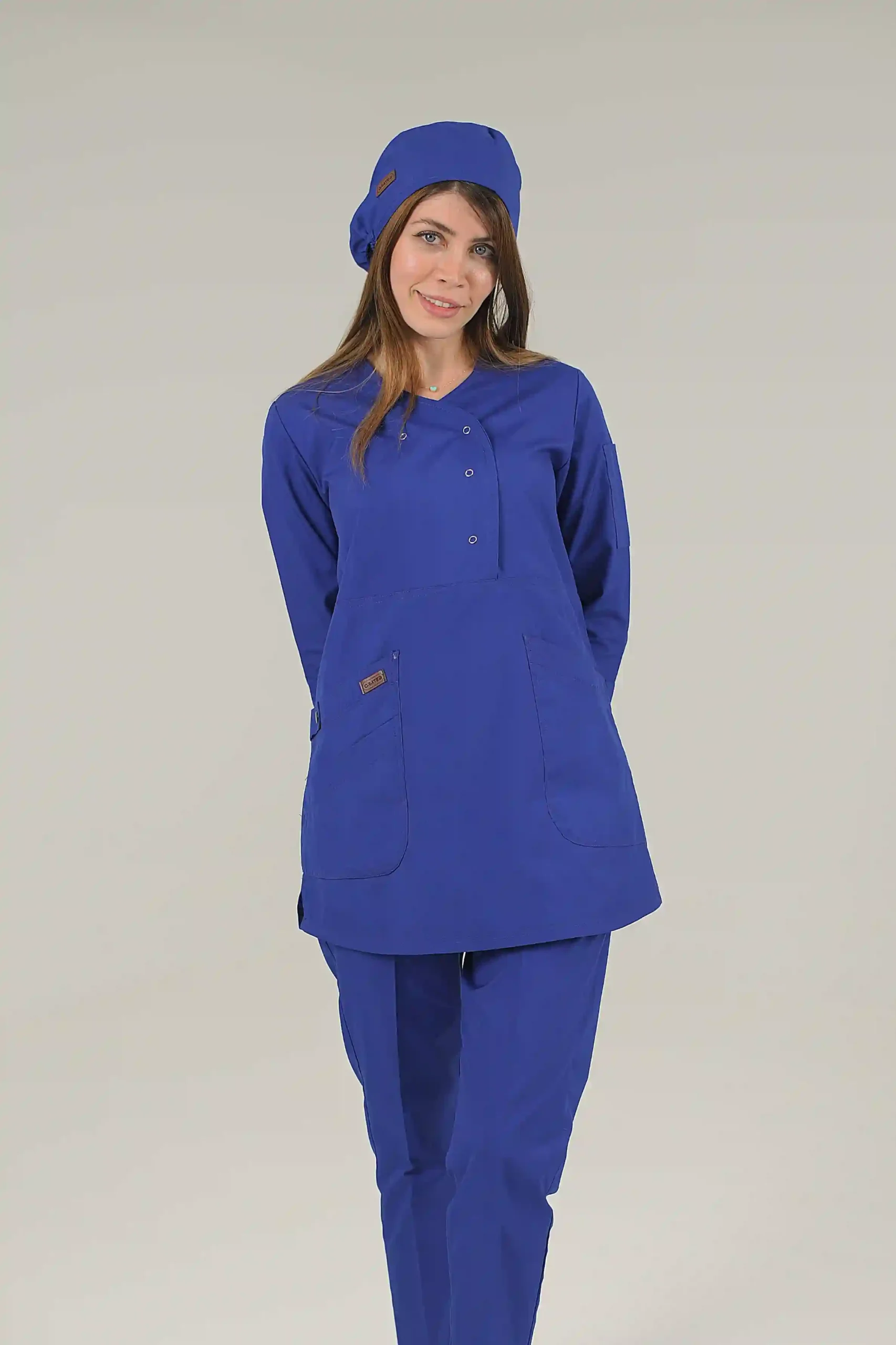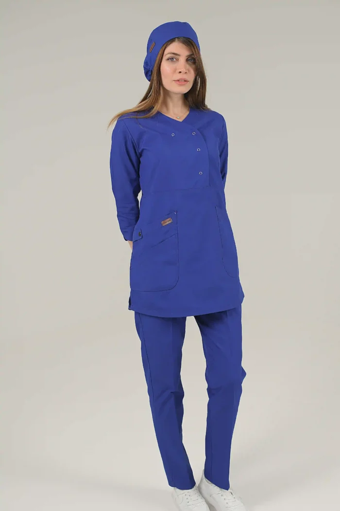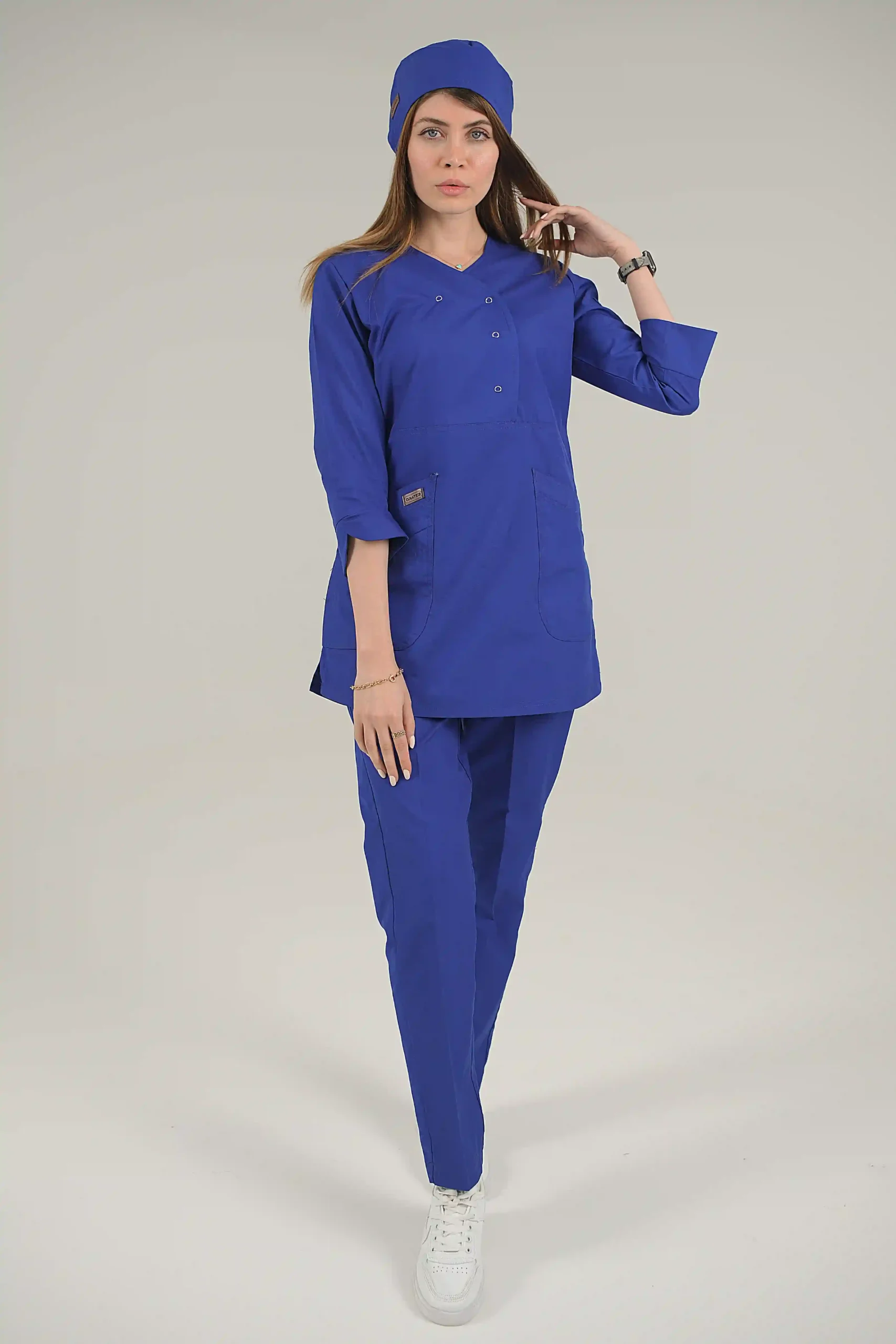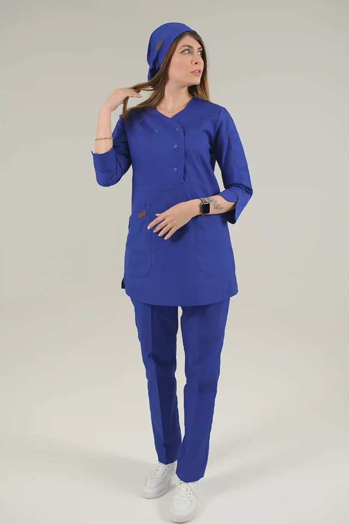 اسکراب زنانه آستین سه ربع آبی کاربنی