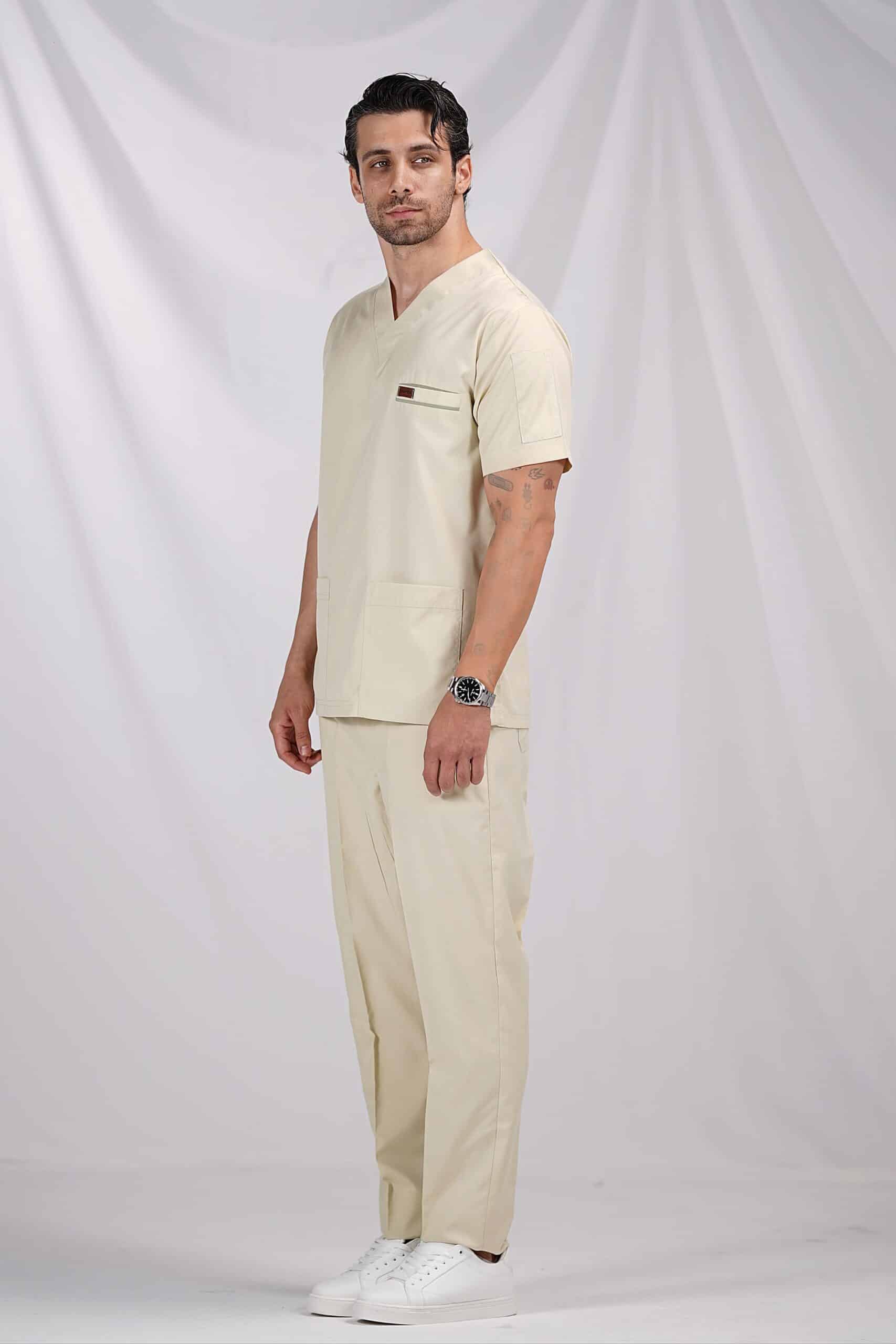 ست اسکراب یقه هفت کرمی