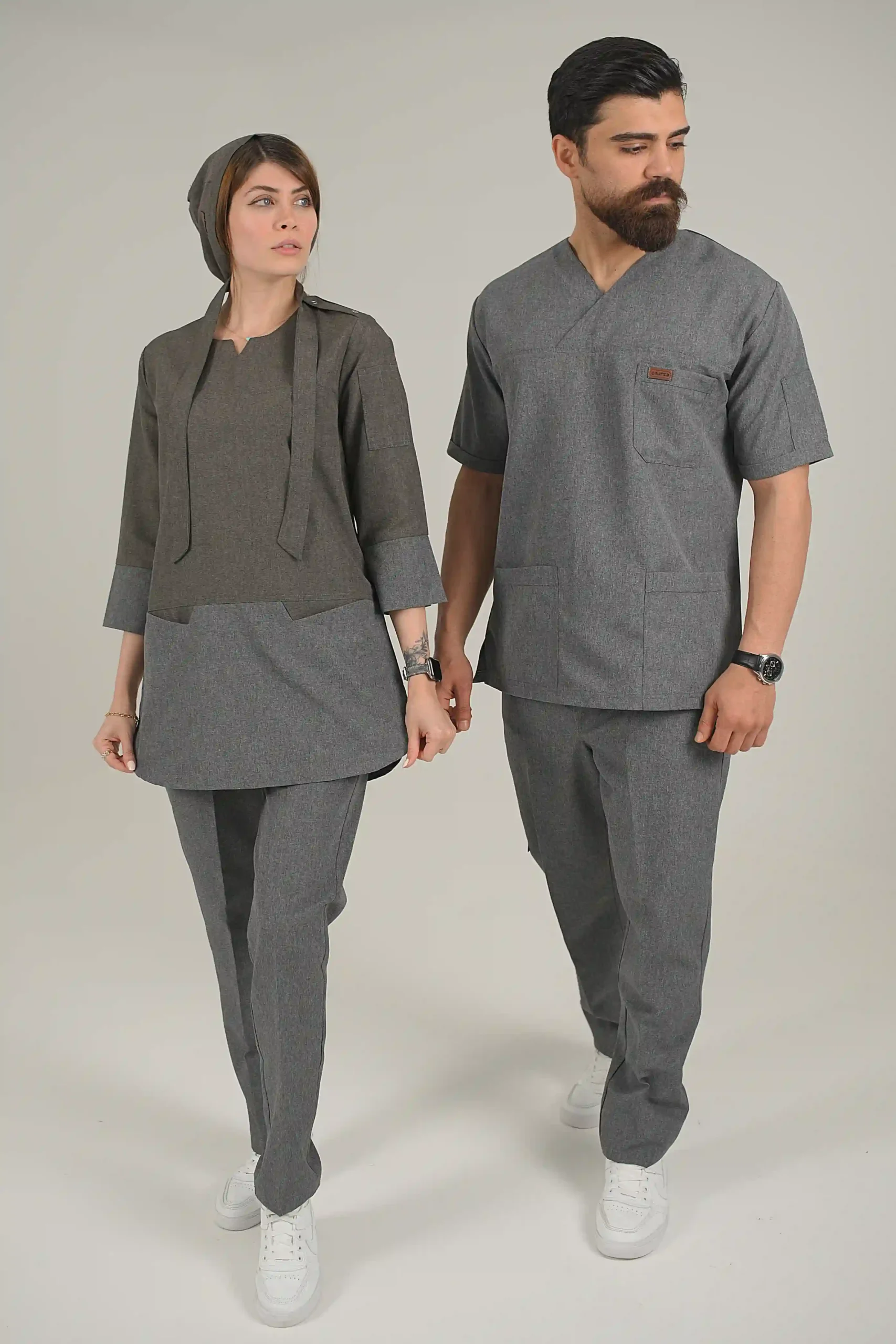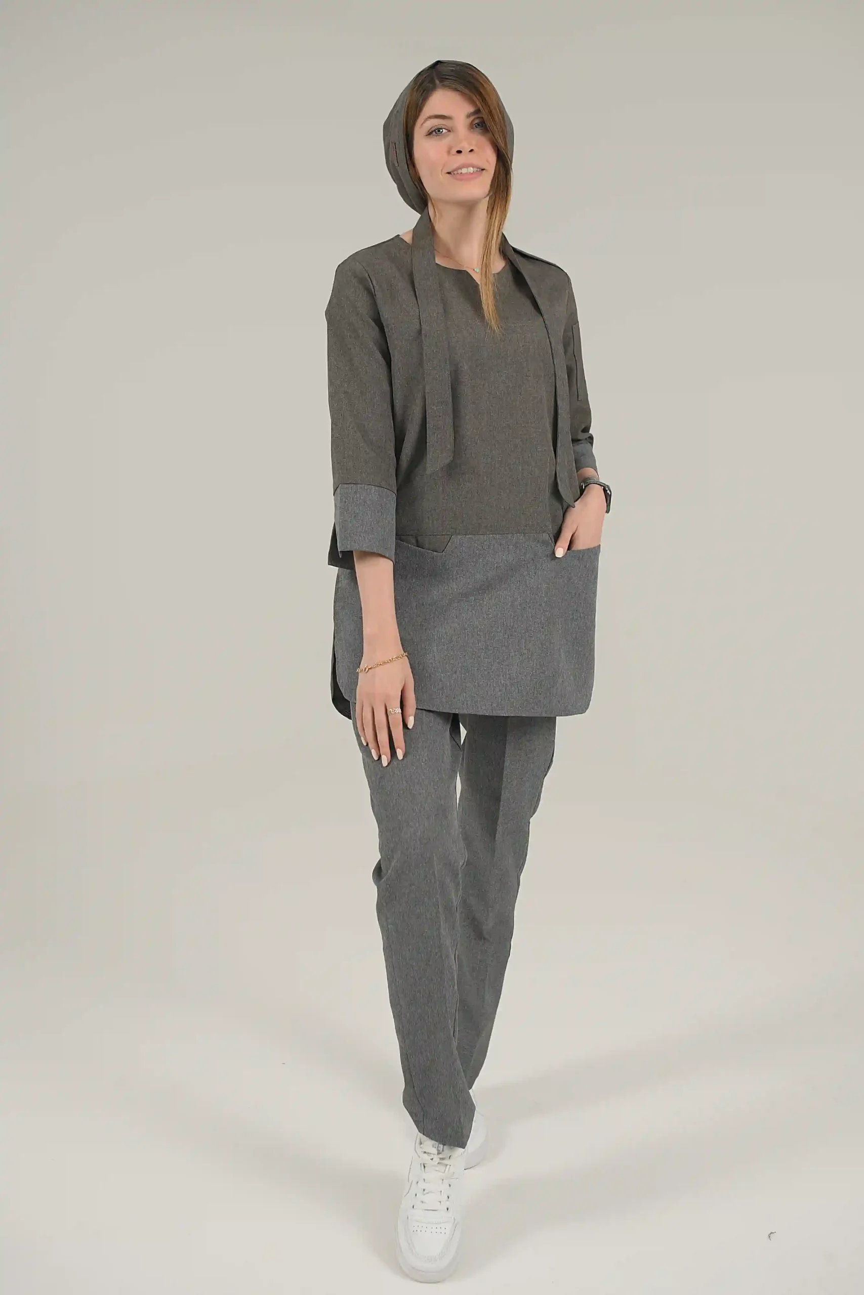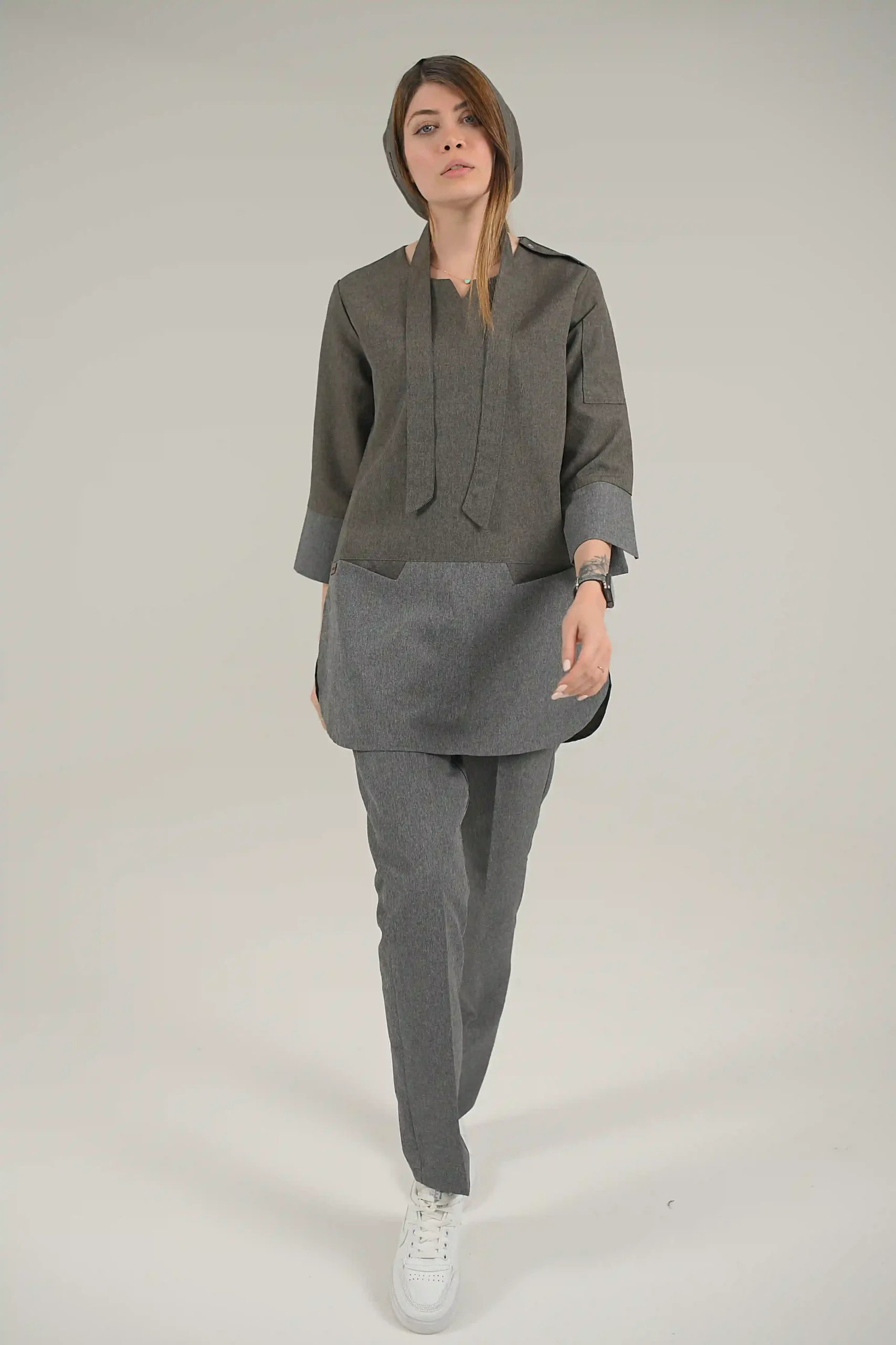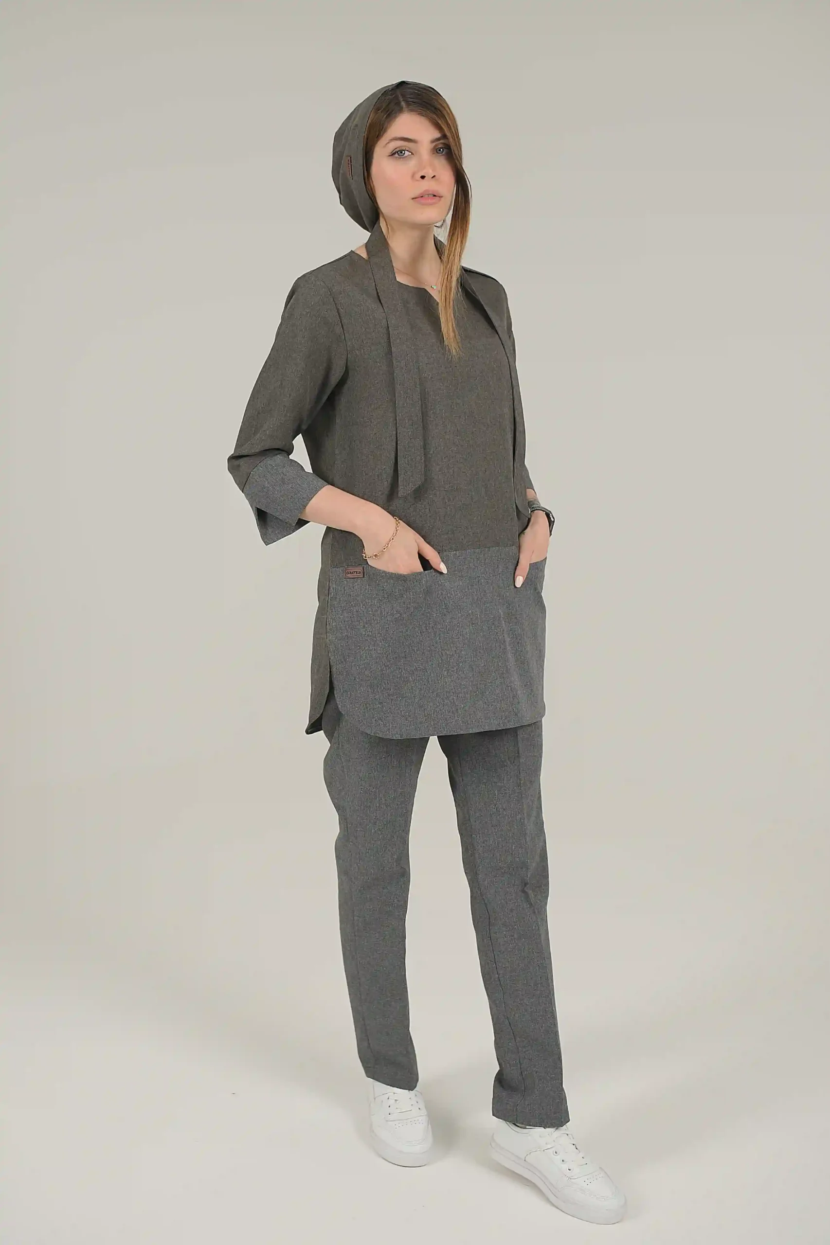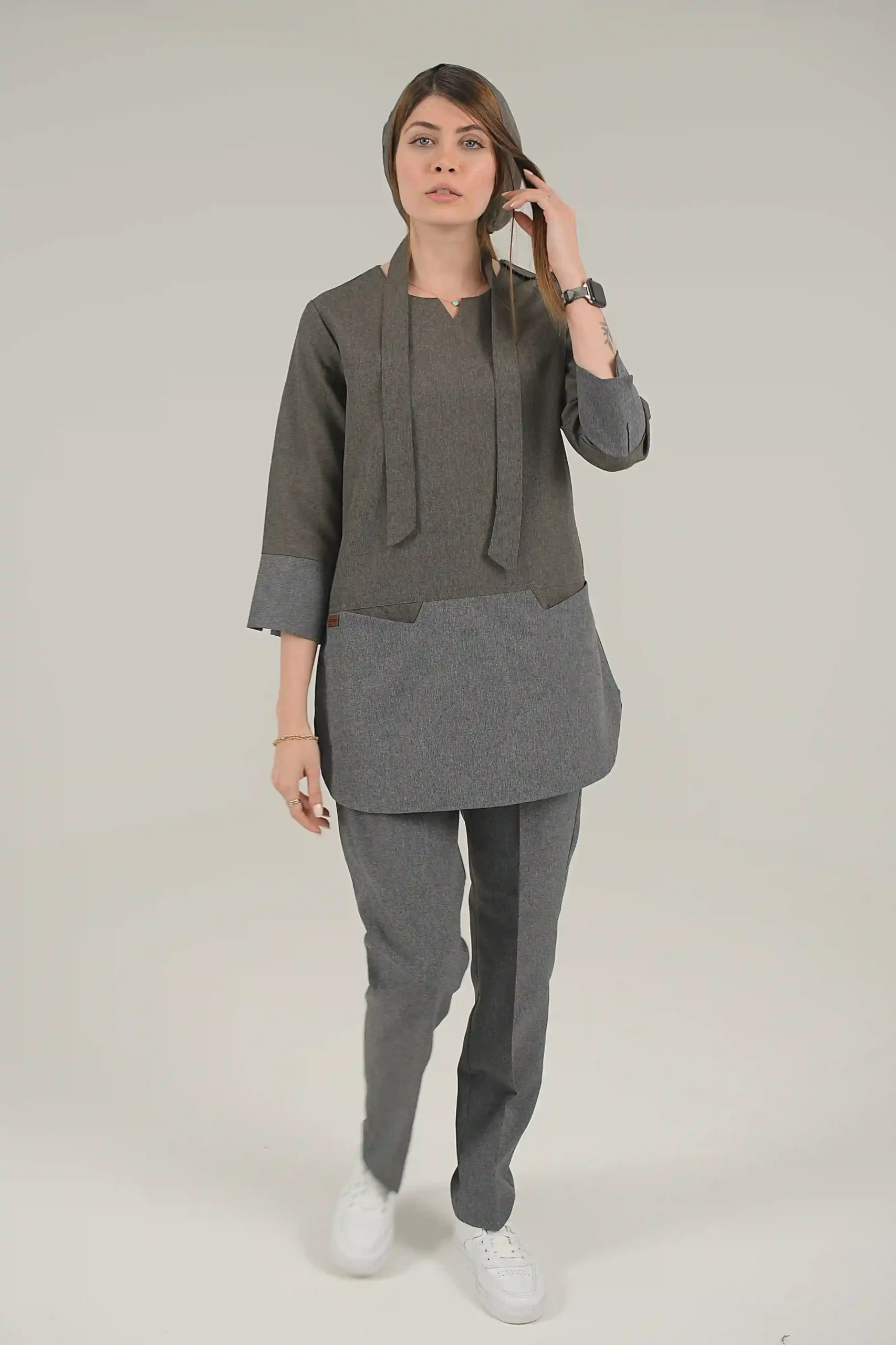 اسکراب زنانه آستین سه ربع طوسی – شکلاتی (دو رنگ)