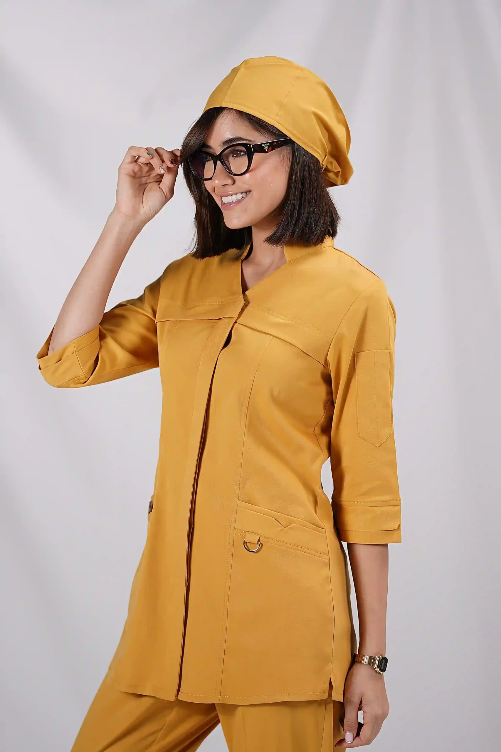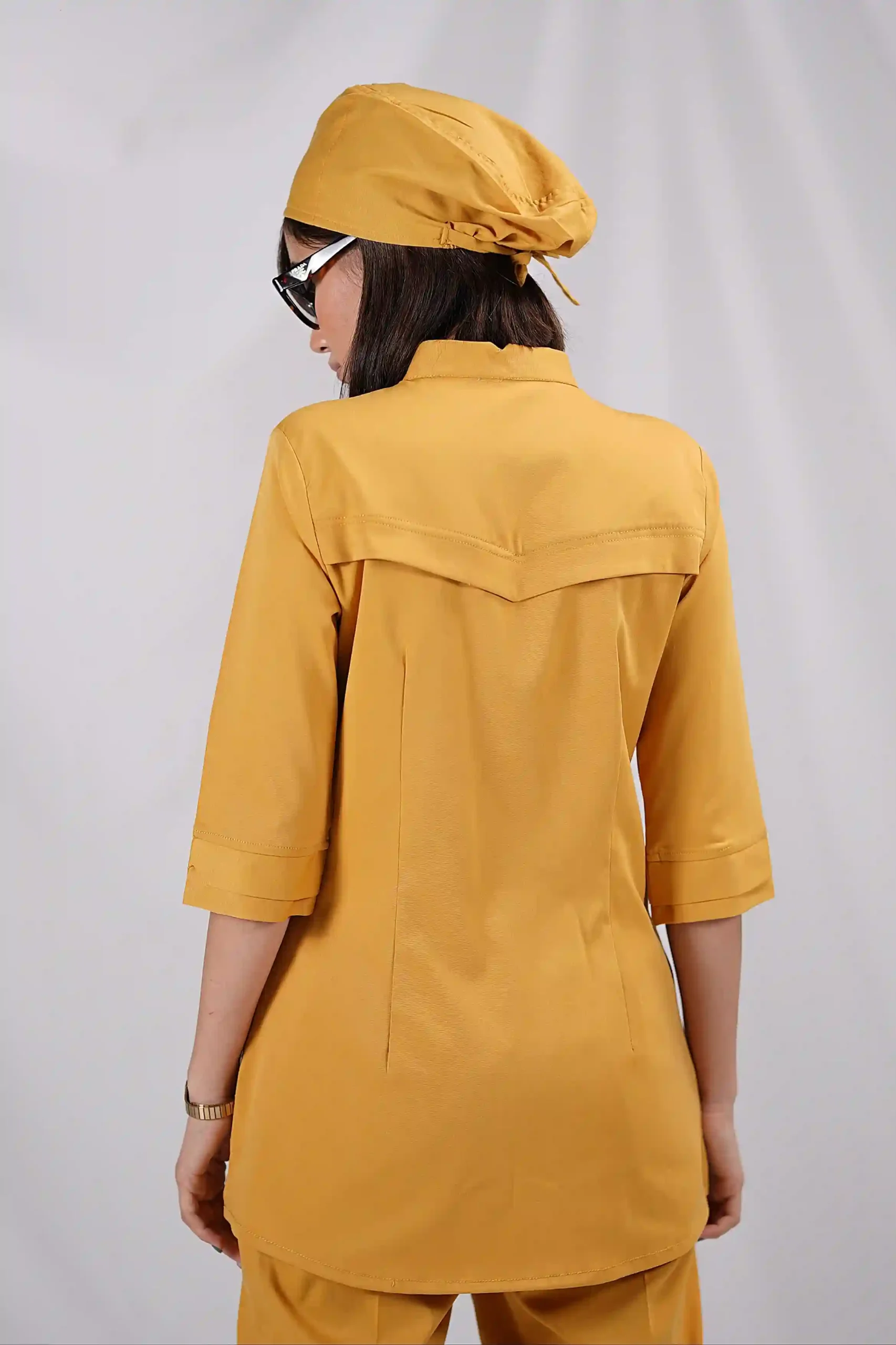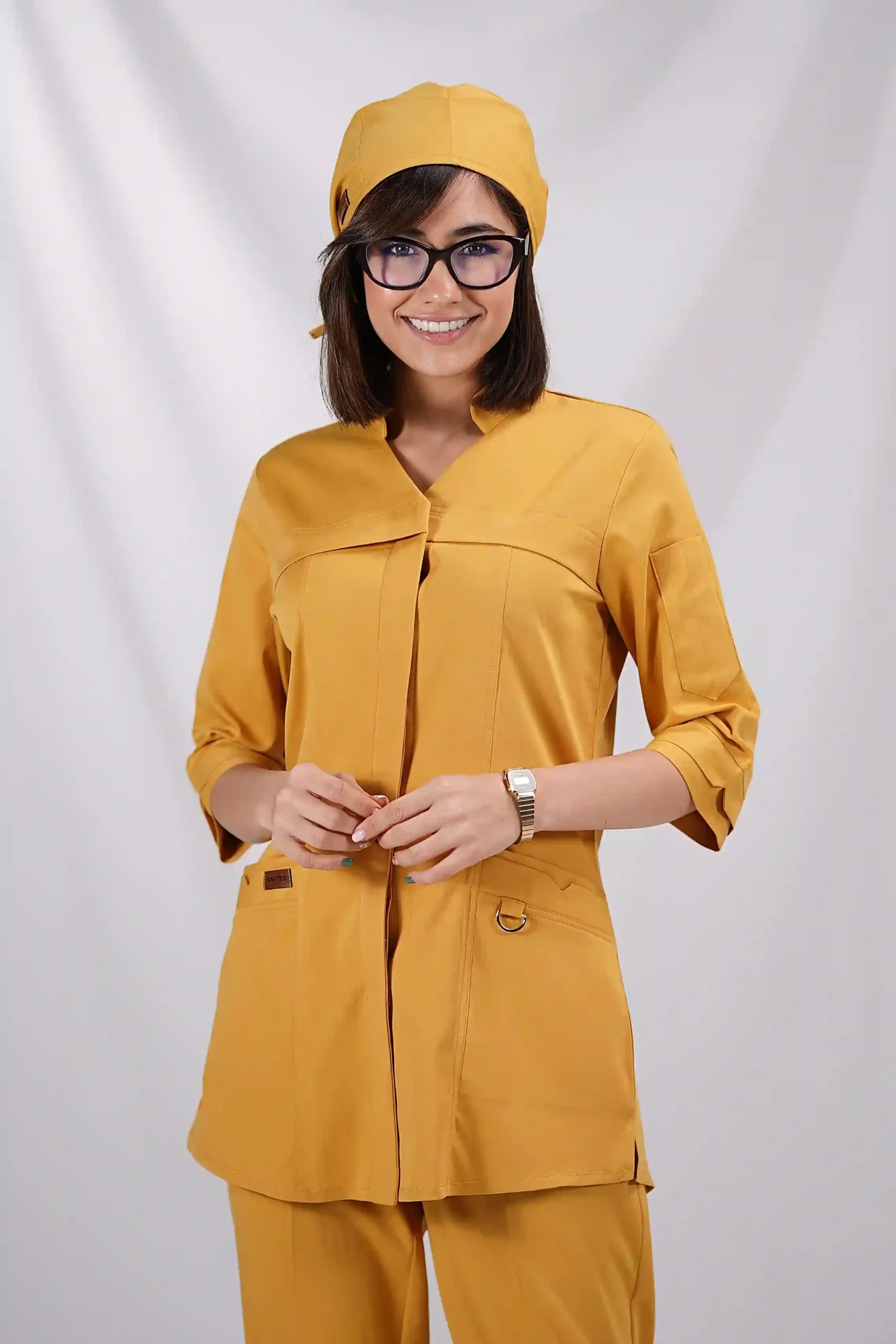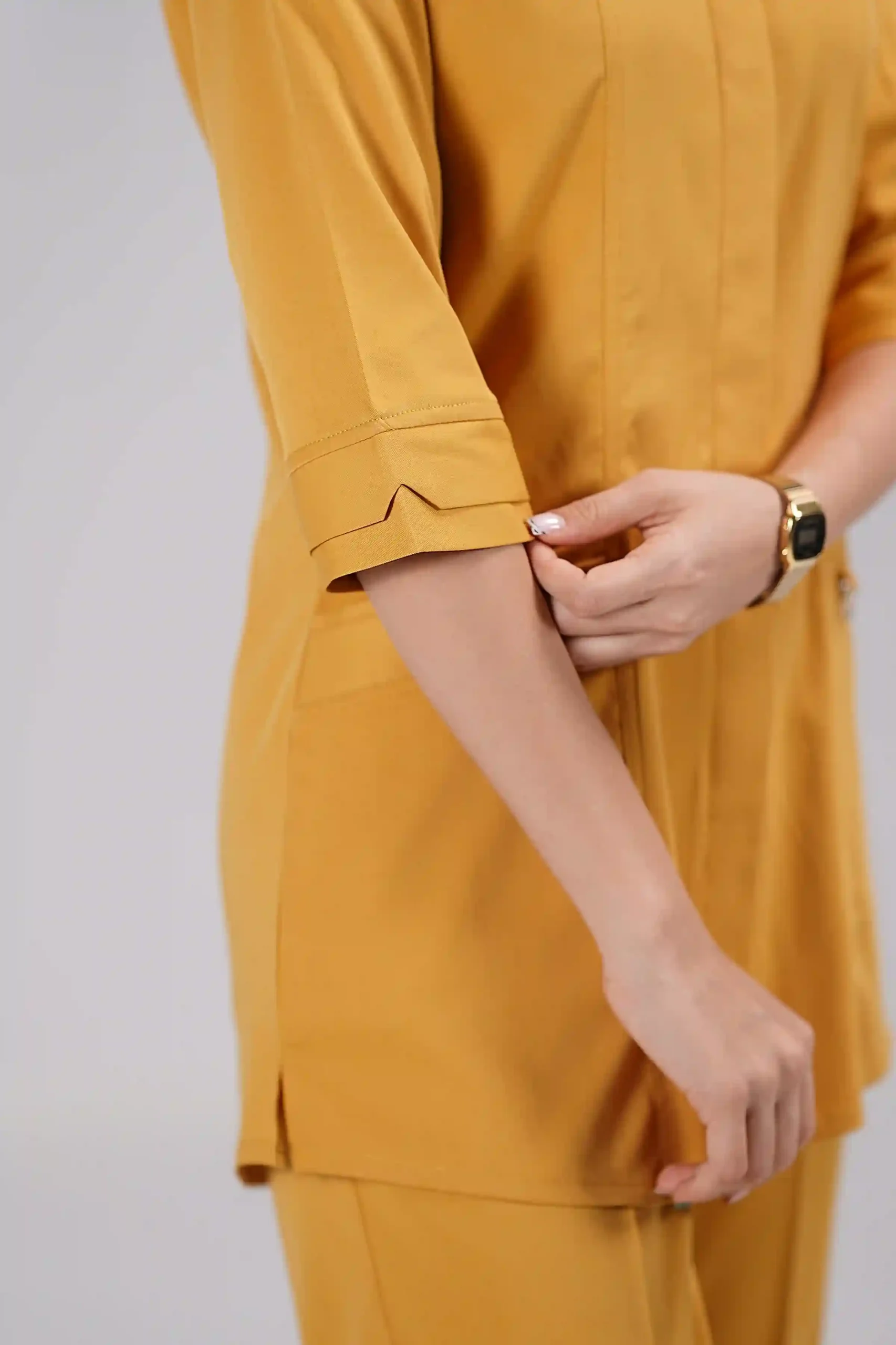 اسکراب زنانه کشی آستین سه ربع خردلی