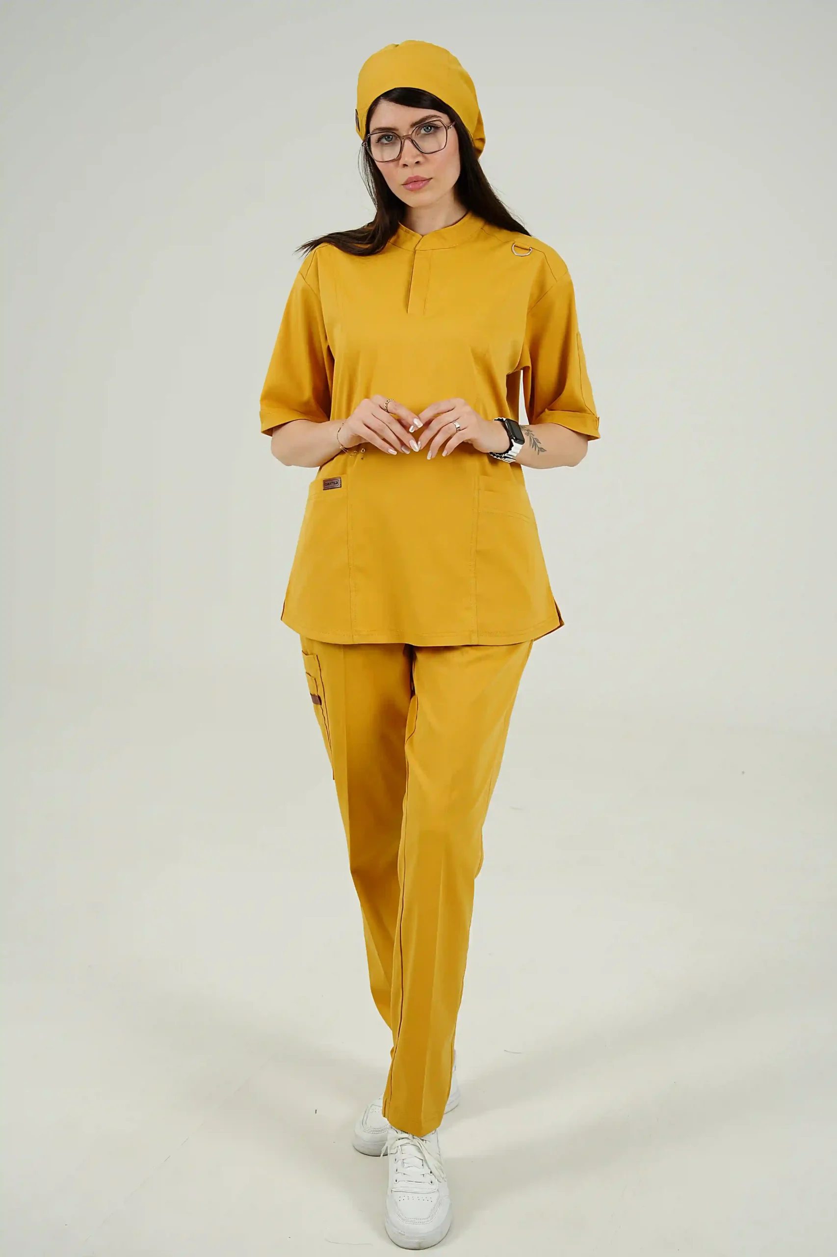 اسکراب پزشکی یقه دیپلمات اسپرت خردلی